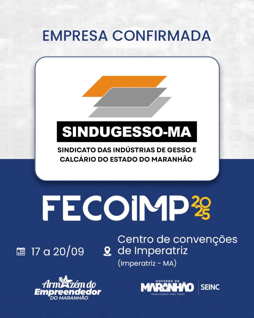 Indústria FECOIMP 2025: Sindugesso leva indústria do gesso e calcário para a maior feira multissetorial do Maranhão 13 de setembro de 2025 Nenhum comentário