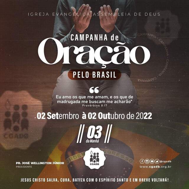 “Mobilize sua família e Igreja para de 2 de setembro a 2 de outubro de 2022, as 3h da manhã, estarmos juntos de joelhos na presença do nosso Deus”, diz o convite divulgado.