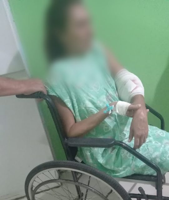 A mulher foi socorrida e levada a uma unidade hospitalar, onde está passando por procedimento cirúrgico.