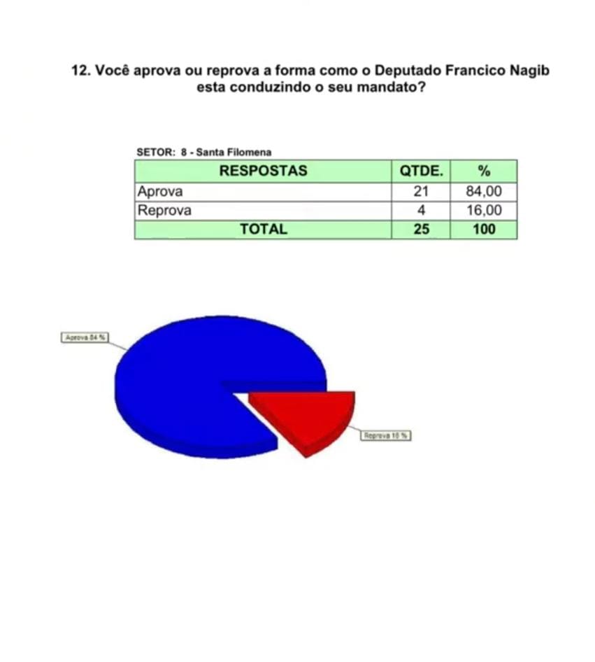 A pesquisa também apontou que a maioria da população aprova a forma como o deputado estadual Francisco Nagib vem conduzindo seu mandato na Assembleia Legislativa do Maranhão.