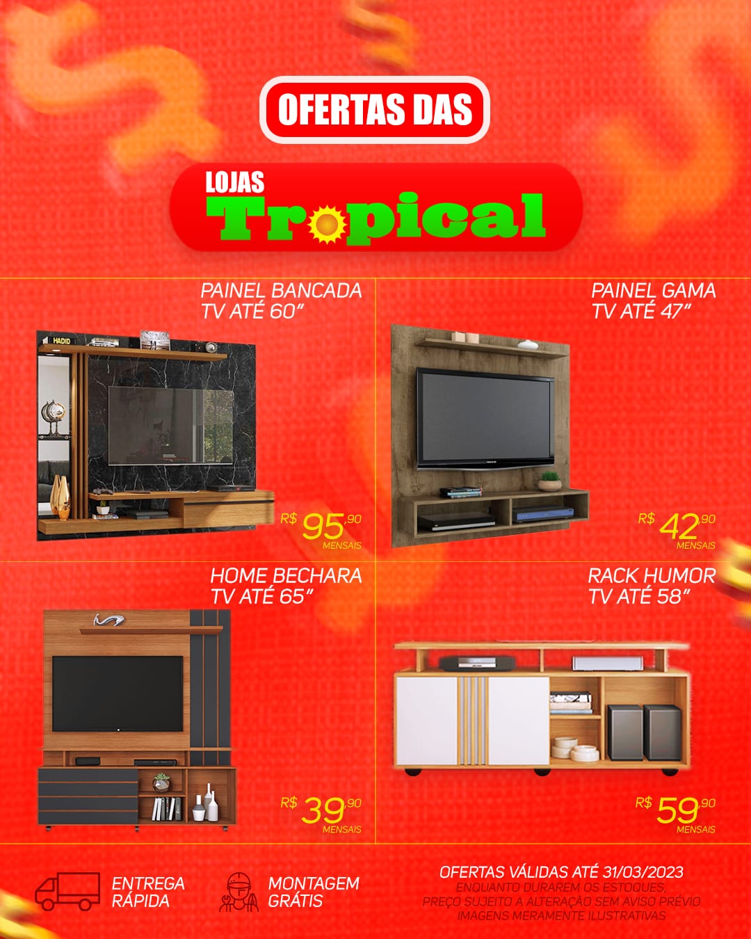 Continua a semana de promoções e ofertas das lojas Tropical que tem mania de vender barato, em diversos setores com menor preço e muitas variedades.
