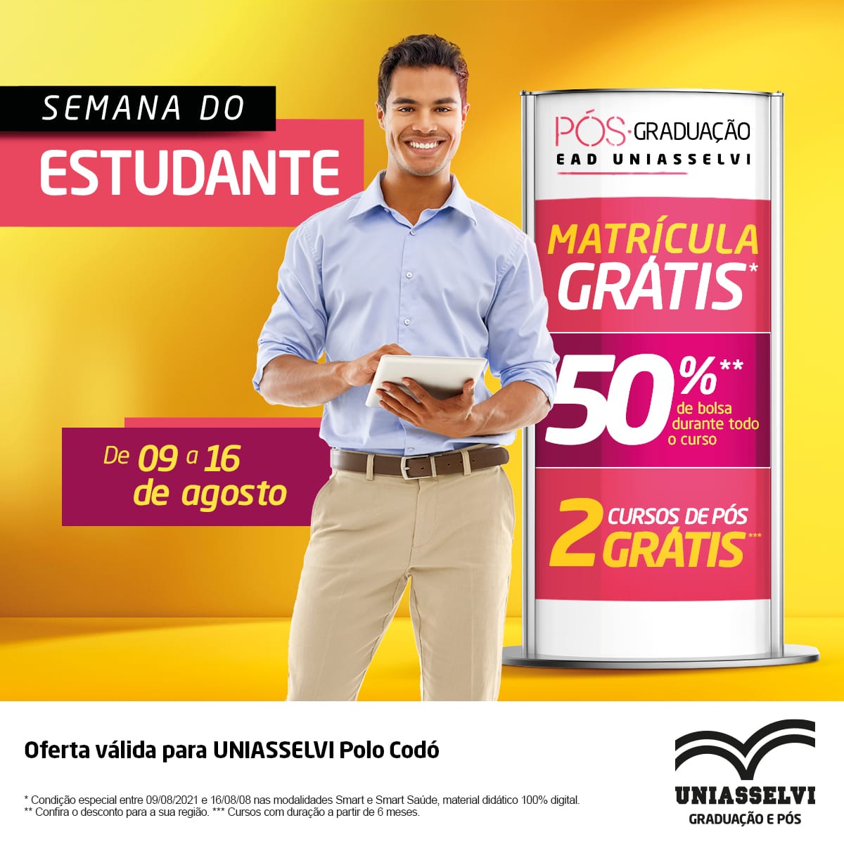 A UNIASSELVI trouxe para você estudante que deseja realizar o sonho da sua gradução descontos incríveis e ofertas de bolsas para você estudar agora mesmo. Confira abaixo pois as ofertas vão até a próxima segunda-feira (16).