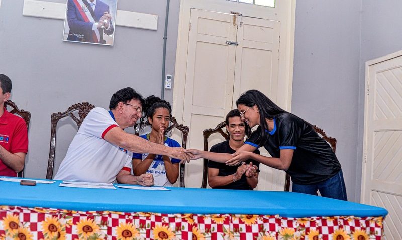 A solenidade aconteceu no Salão Nobre da Prefeitura e contou com a presença do prefeito Chiquinho FC (PT), do secretário municipal de Juventude Valdeci Calixto, os presidentes dos grêmios e membros da comunidade escolar.