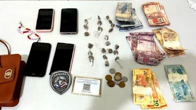 Durante o cumprimento de busca domiciliar, a mulher de 52 anos, estava na companhia de dois adolescentes, e em poder deles foram apreendidos 22 invólucros de maconha acondicionadas para venda; 04 aparelhos celulares roubados nos municípios de Caxias e Aldeias Altas e uma quantia de 862 reais em notas trocadas.