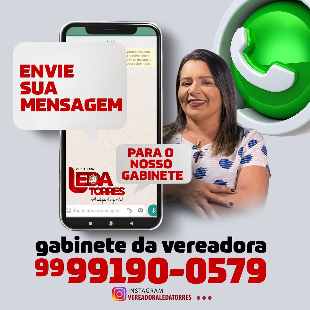 A vereadora Leda Torres disponibilizou mais um canal de acesso para contato com a população codoense. Por meio do whatsapp (99) 99190-0579, o cidadão poderá interagir com a Assessoria de Gabinete da parlamentar e informar suas demandas e necessidades, além de sugestões, para a vereadora faça Indicações, Requerimentos e Projetos de Lei em benefício da população e da melhoria da qualidade de vida dos munícipes.